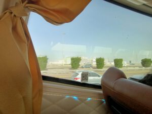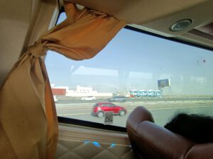 Nach der Grenze zu Dubai hörten sie schlagartig auf und schon begann meine Ablehnung dieses Emirats des Größenwahns. In der Stadt der Superlative erlebte der Bus dann in zwei Tagen auf den zwölfspurigen Straßen jeweils eine Stunde Stau. Sieht so das Übermorgen aus? In der Zeitung stand, dass ein Drittel der Bevölkerung die kurze Metro Strecke sehr schätzte…