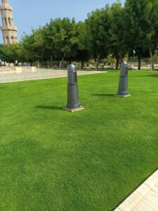 Unsere Februarreise auf der arabischen Halbinsel, begann im Sultanat Oman, in der Hauptstadt Muskat. Überall gepflegtes Grün, vor der großen Sultan Qabus Moschee üppige Beete und kurzgeschnittener Rasen. Erst erschien es mir wie aus Plastik; aber da waren auch Schläuche. Ein mittelalter Mann bückte sich und tastete, um dann mehrmals „Wahnsinn! Respekt!“ zu rufen. Er sei aus der Baubranche und wisse, was da für Mühen hinter steckten.