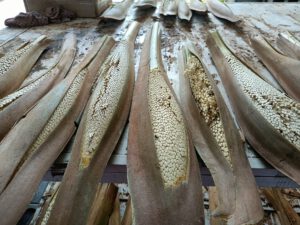 Die Palmen werden auch als Baumaterial genutzt: die Viertel der Stämme als Balken und die Wedel als Dach.