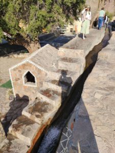 Nach meinem Reiseführer (von 2020) sind es über vier Tausend, von denen etwa ein Drittel noch genutzt werden. In den Gemeinden gab (und gibt es) Wasserwärter, die auf eine gerechte Verteilung des kostbaren Gutes achten. Dabei gilt die Reihenfolge: Mensch (auch für die Waschungen), Tier, Pflanze. Ob bei den Rasensprengern vor der Qaboos Moschee in Muskat (Von Vorgestern nach Übermorgen in einer Woche) auch so ein Wasserwächter dabei war?