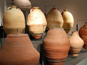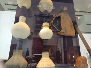 Die Beduinen nutzten Säcke aus Kamelleder, lange vor der Zeit den Keramikgefäßen. Davon gab es Beispiele als allen Epochen.